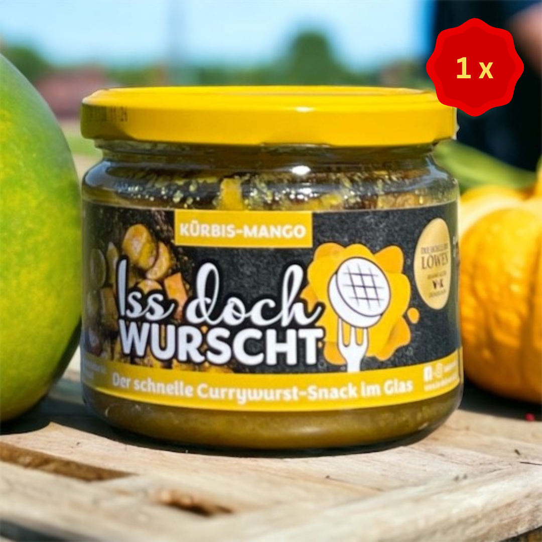 1x Kürbis-Mango Currywurst – Exotisch & raffiniert – süß, würzig und perfekt abgestimmt.