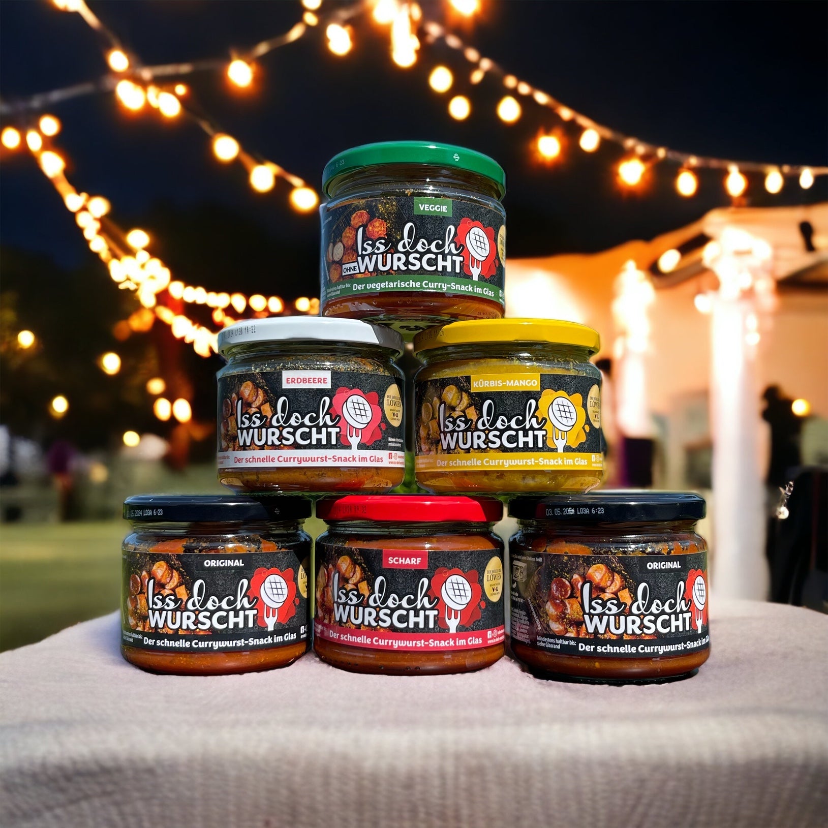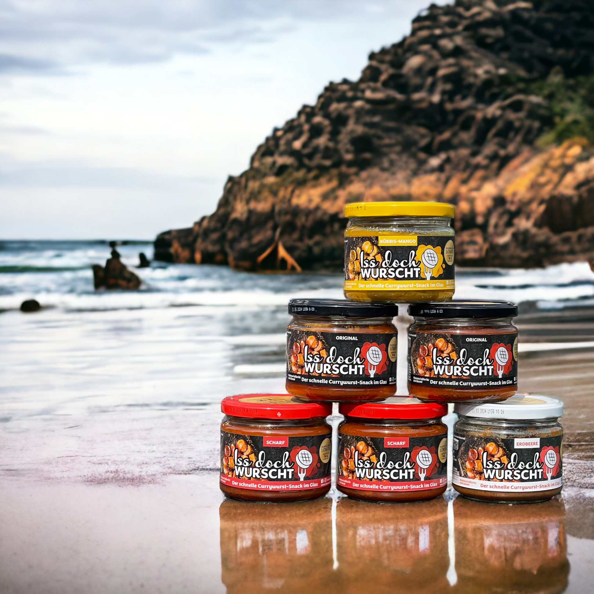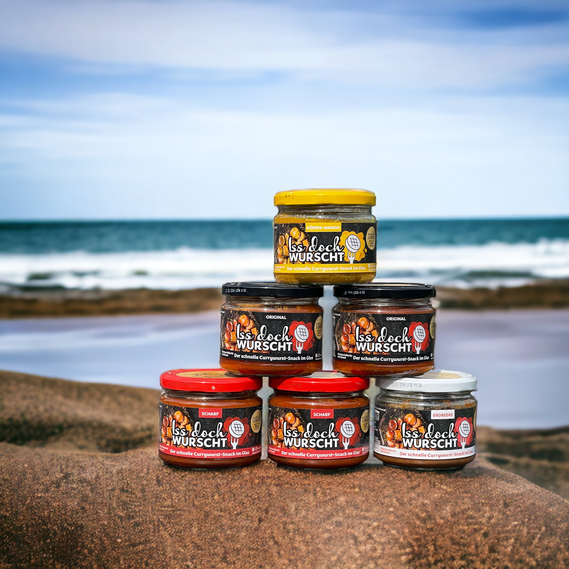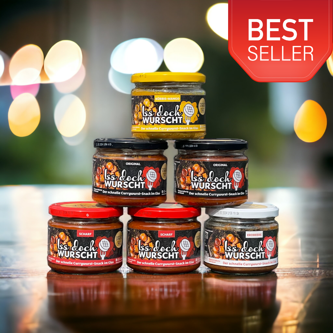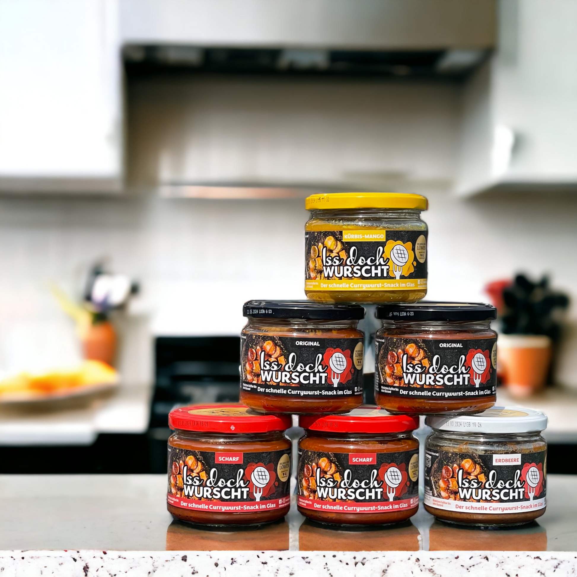 Tauche ein in eine einzigartige Geschmacksreise mit unserem Currywurst Probierset! Hier bekommst du die volle Vielfalt – von klassisch bis exotisch – und kannst alle unsere beliebten Varianten entdecken.